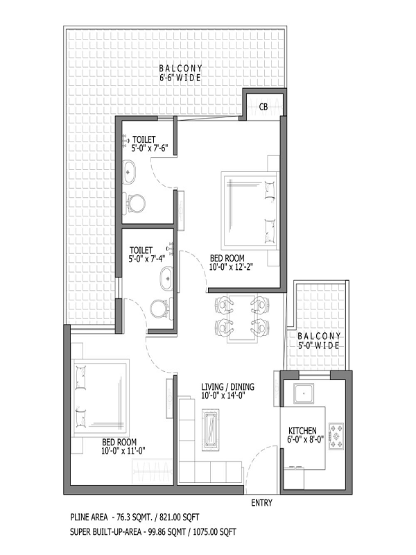 Vitrified tiles 2’x2′ in Drawing Room, Kitchen and Bedrooms