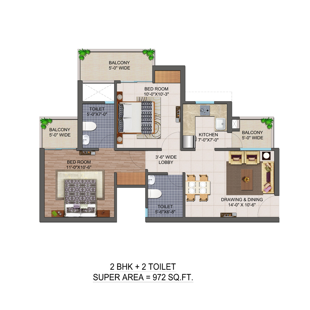 • Jan Ghar Awas Yojana Greater Noida West flats Available in 972sqft.,1095sqft. and 1240sqft. area